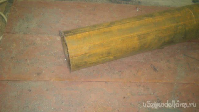 Для этого я отрезал от трубы ещё один отрезок, длиной 150 мм и разрезал его вдоль: