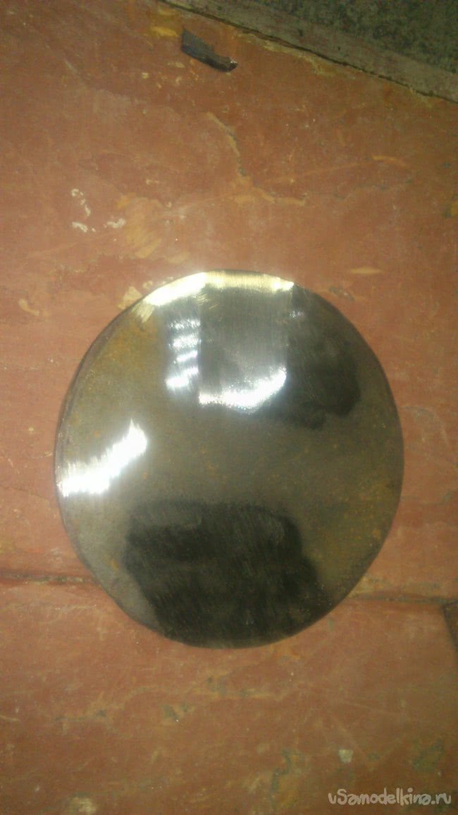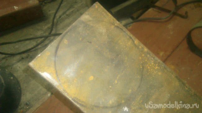 Длинный отрезок будет дымоходом, а из короткого и из кольца я изготовлю заслонку. Саму, собственно заслонку я вырезал из листовой стали 4мм (Остаток после изготовления люка):