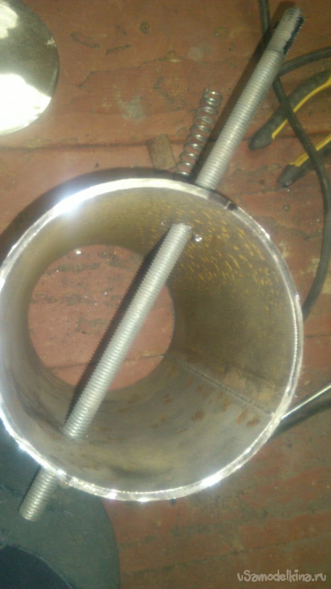 Теперь нужно изготовить заслонки для дымохода и для подачи второго воздуха. Для того, чтобы изготовить дымоход, мне пришлось купить метр стальной трубы, диаметром 108 мм. (Диаметр был задан размером выпускного колена).