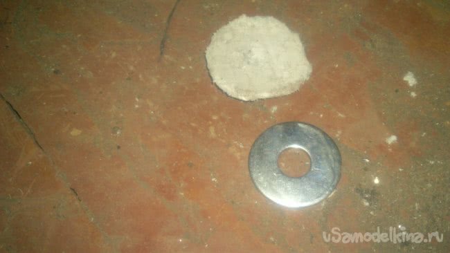 Для этого, порывшись в запасах "нужного хлама", я отыскал несколько увеличенных шайб и кусок листового асбеста, из которого я вырезал два кружка по размеру шайб: