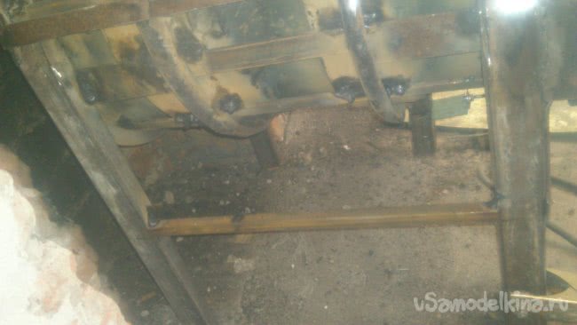 Швы (где видно) немного подчищены. Гайки заменены на колпачковые. Снизу приварил решётки (чисто для красоты. Они ничего не дают)))). И вся конструкция была окрашена термоэмалью: