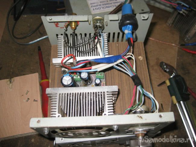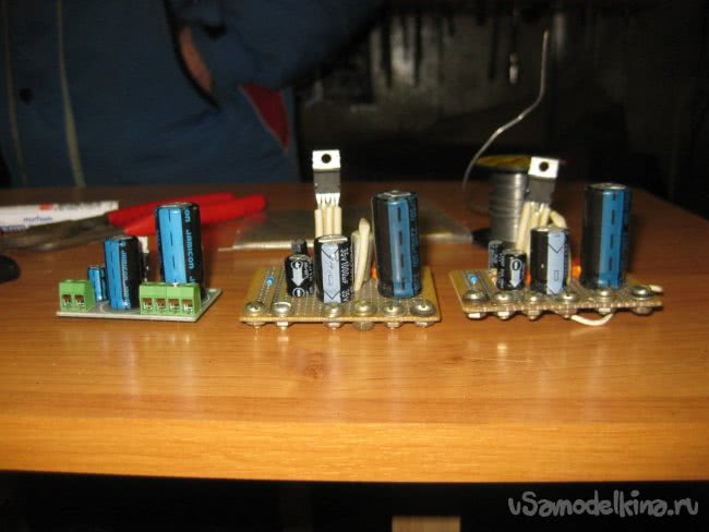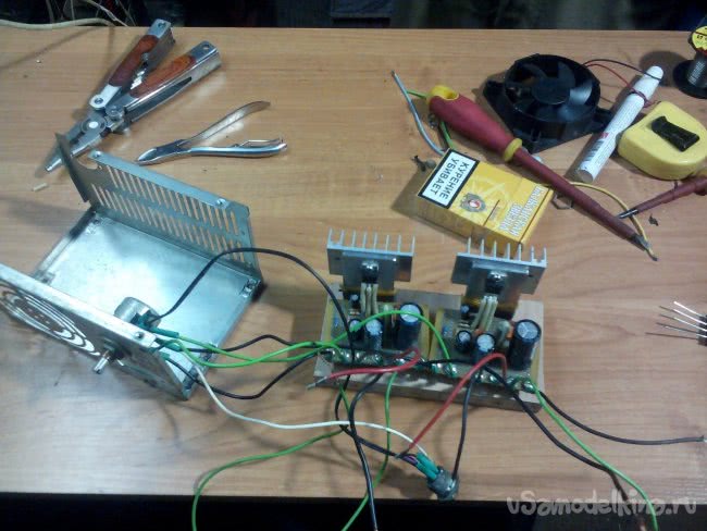 Тут на фотографиях представлен целый набор поделок, это монофонический усилитель для сабвуфера, стереоусилитель для пионеровских динамиков, и блок питания в основе которого трансформатор от старого советского сгоревшего усилителя радиотехника у-101. И кстати насчёт сабвуфера, как раз предыдущая самоделка представленная на этом сайте у меня про подсветку сабвуфера, который в конце этого видеоролика. Кому интересно посмотрите.