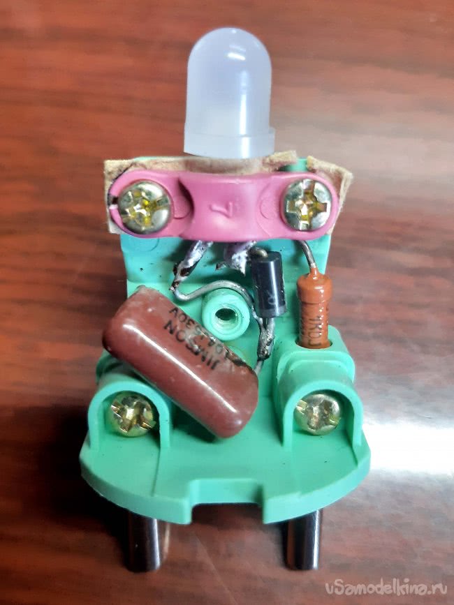 Можно было бы конечно добавить разряжающий резистор на конденсатор, но так как ёмкость конденсатора очень мала, а ночник предполагается никогда не вытаскивать из розетки, то решил резистор не ставить. Теперь если ночью захочется попить водички, свет можно не включать.
