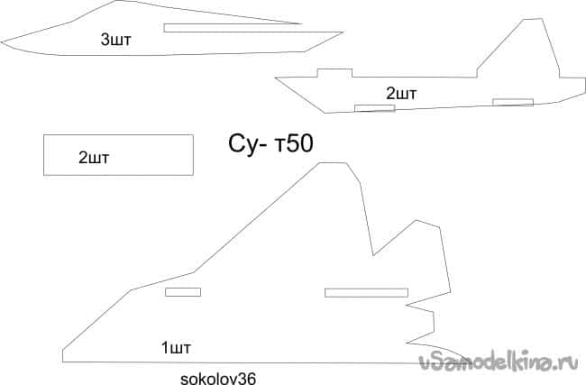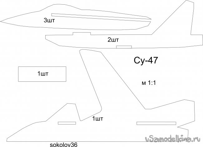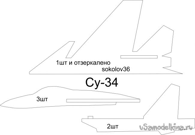 Берем шаблон фюзеляжа и обрисовываем его три раза ,чтобы получилось три одинаковые детали.