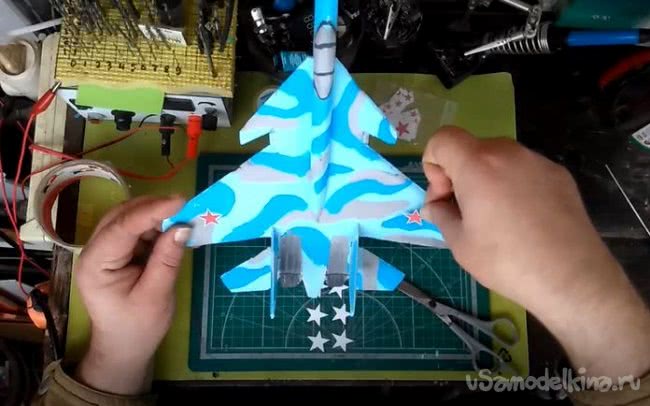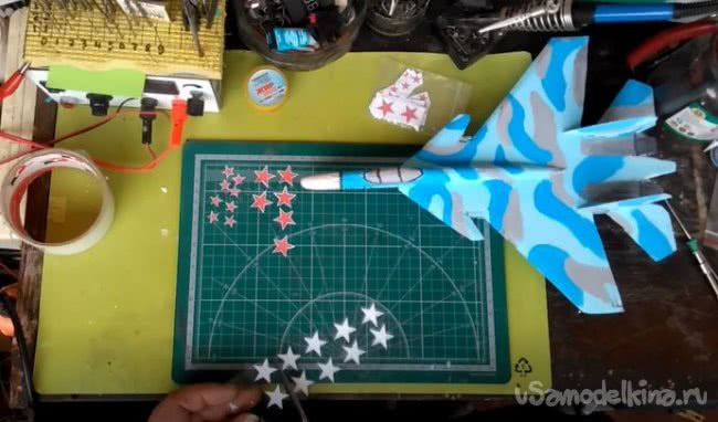 Пока краска на модели высыхает можно на принтере распечатать звезды или другую символику разных размеров.