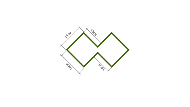Наружные стороны фигуры должны быть по 14см.Внутренние стороны по 13см.