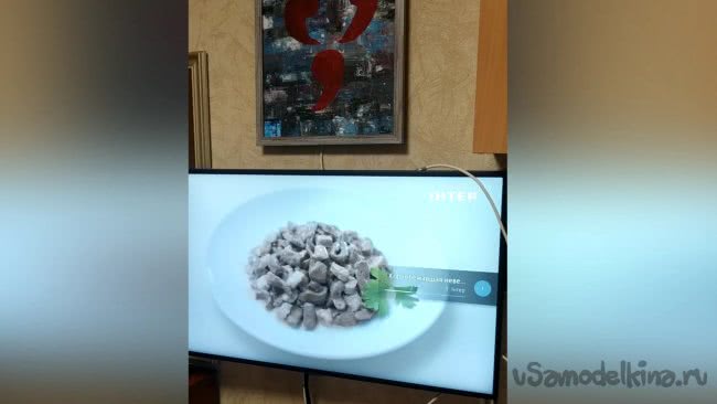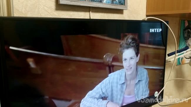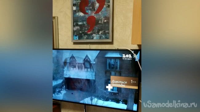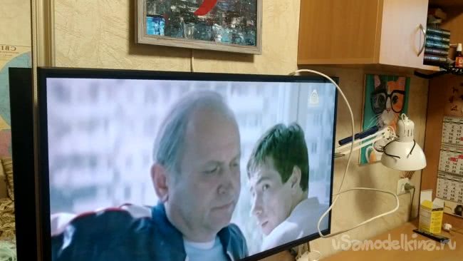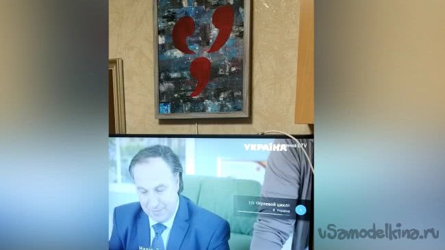 Антенна практически готова, я вставляю картонную рамку в картину, подключаю кабель к телевизору (в нём есть встроенный Т2 приемник) , и можно испытывать.