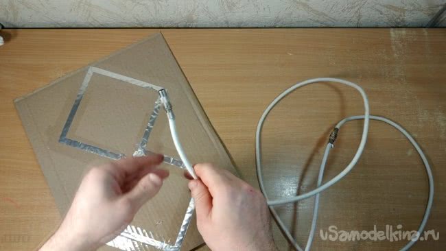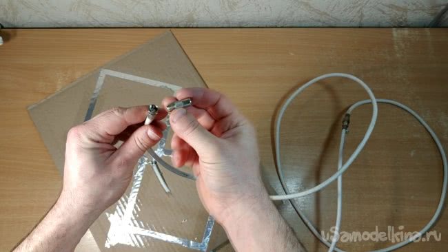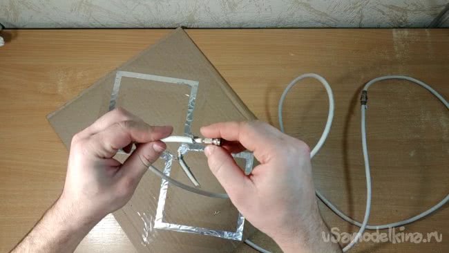 Следующим шагом будет подключение телевизионного кабеля к рамке антенны.