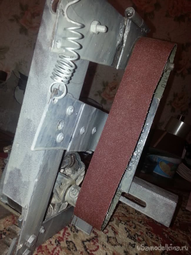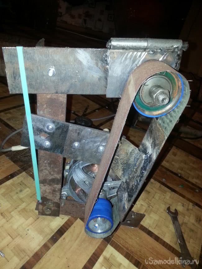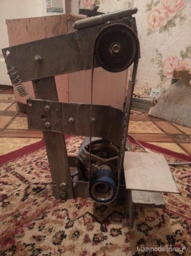 Все покрасил грунтовкой, чтобы не ржавело, ничего не покупал, только ленту наждачную, а двигатель друг подарил