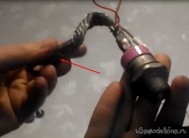 Обратите внимание! Что на минус батарейки припаиваем именно дополнительный катод, то есть провод, который запараллелен к самой косе(выходит из нее).