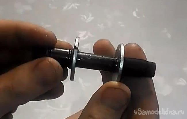Продеваем провод в прорезь в шайбе, и начинаем намотку.