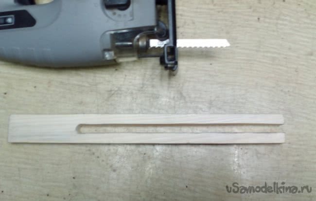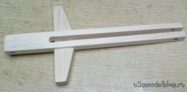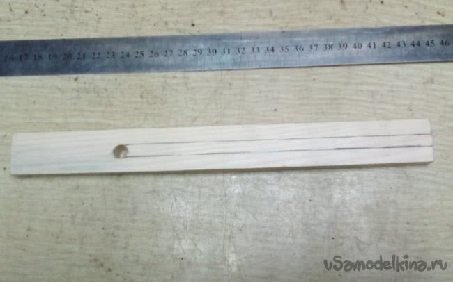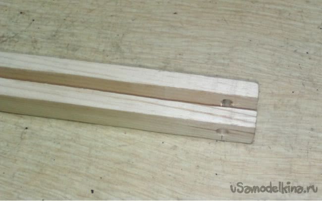 Выпиливаем паз под штангу и выбираем долотом место паза. Подгоняем паз рашпилем и наждачной бумагой так чтобы штанга свободно, но без люфтов двигалась внутри паза.