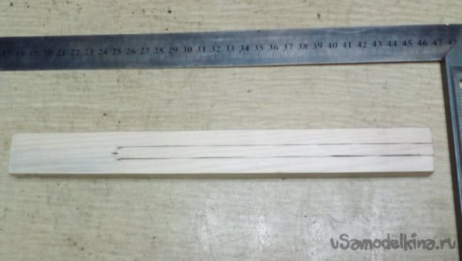 Размечаем будущий вырез, ширина которого равна диаметру карандаша, маркера или металлической чертилки.