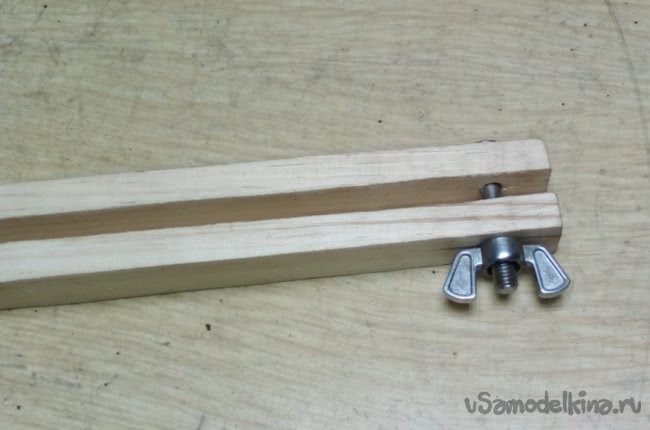 Конструкция самодельного рейсмуса довольно простая и представляет собой колодку и подвижную штангу, которая фиксируется в нужном положении при помощи болта с выпуклой шляпкой и барашковой гайки.