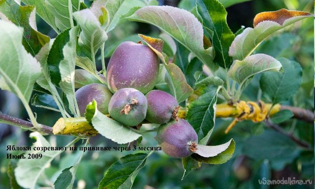 На фото видно, что даже спустя месяцы место прививки видно на побеге. Однако просто поражает, как сильно вырос привой за эти три месяца!