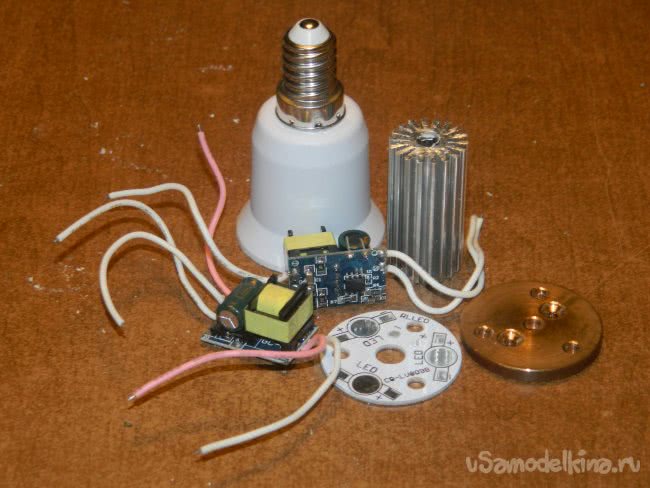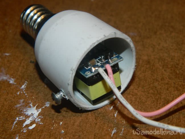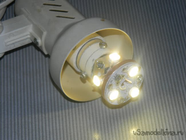 Больше всего я опасался перегрева дополнительных светодиодов, поэтому, найдя лампу с патроном Е14, стал экспериментировать.