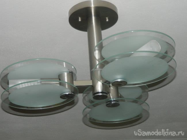 Я ввернул лампы в люстру, отрегулировал положение бокового светоизлучателя, вставил плафоны и включил свет!