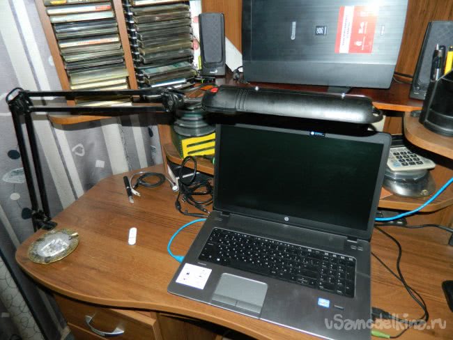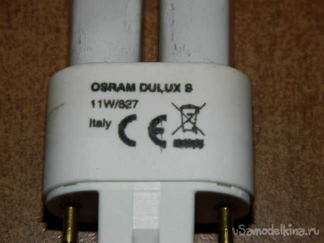 В кабинете (да и в квартире в целом) оставалась единственная энергосберегающая лампа в настольном светильнике на рабочем столе — остальные светильники я уже переделал на светодиодные. Лампы G23 (мощность 11 Вт) фирмы OSRAM менял раз в год, так как светильник использовался достаточно интенсивно. За полгода до перегорания лампа начинала мигать, что раздражало. Лампа включалась, как и обычная люминесцентная, т.е. с задержкой, которая нужна была для прогрева стартера, который находился в цоколе.