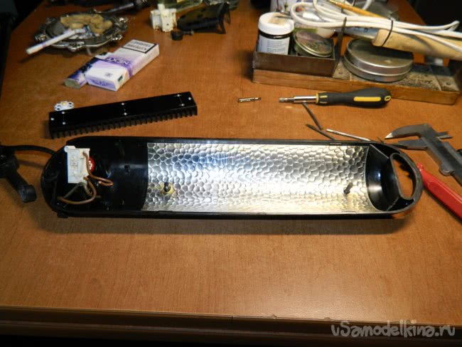 Разобрав лампу (всего три винтика отвернул), я понял что переделки будут минимальны: разместится и драйвер, и светодиоды на радиаторе.