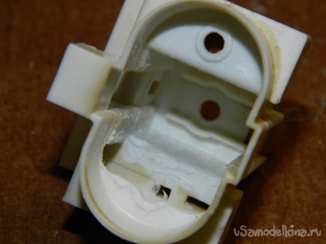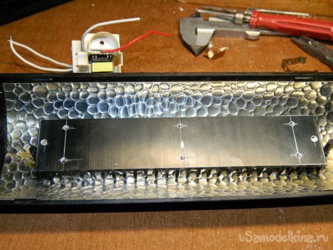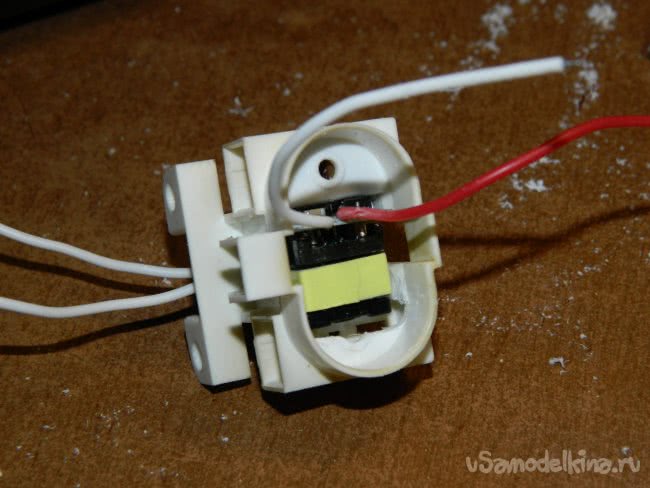 Половина патрона G23 было выфрезеровано бормашинкой с целью размещения в него драйвера. Драйвер встал, как родной (не надо было изолировать его от светоотражателя лампы и радиатора.