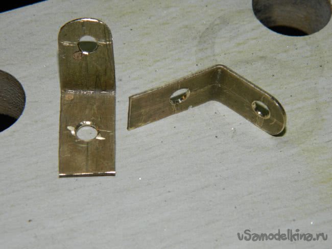 Всем хорош датчик, но высота его установки меня не устраивала – в ванной просто не было просто места, чтобы разместить его по правилам. Я пошёл на хитрость. Из листовой латуни изготовил два уголка так, что на козырьке туалетного шкафчика датчик был бы наклонён вниз, и в его поле действия попадал человек.