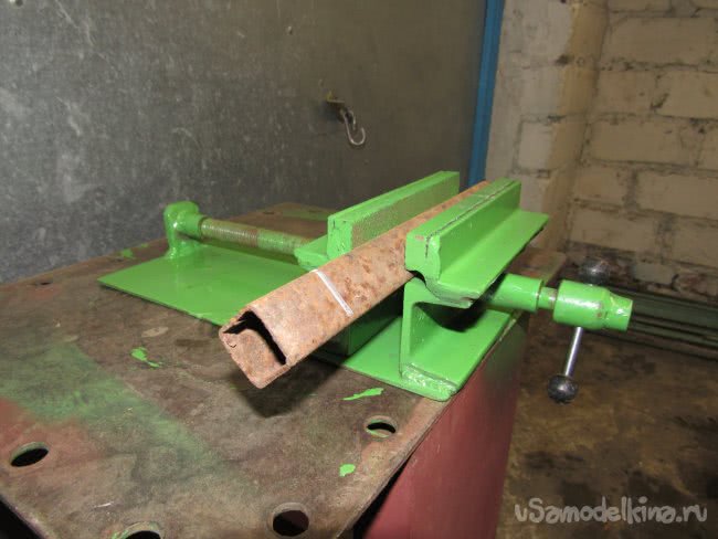 Пазы между брусками и швеллерами нужны для надёжного крепления деталей (труб, в том числе фасонных труб, уголков, тонкостенных трубок.