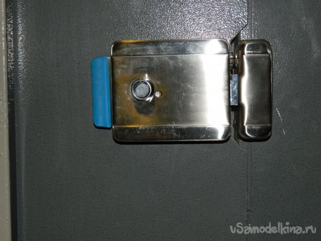 Начал я с установки электромеханического замка. Почему он лучше, чем электромагнитный? Во-первых, замок работает и при отключённом электричестве. Во-вторых, зря электричество не расходует. В-третьих, снаружи он открывается обыкновенным ключом (5 ключей прилагалось) или импульсом напряжения, который подаётся с монитора в квартире, а изнутри есть механическая кнопка для открывания. Но, зато он более прихотлив к установке и регулировке. Поэтому я и сделал ставку на замок фирмы “FASS” (США).