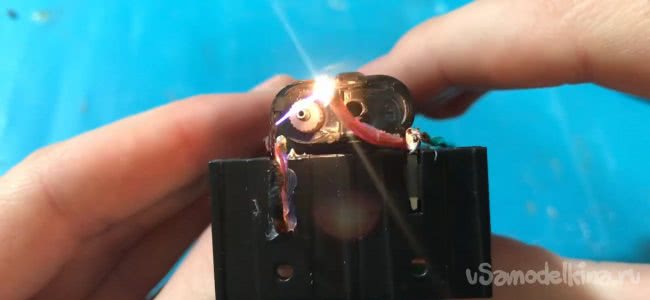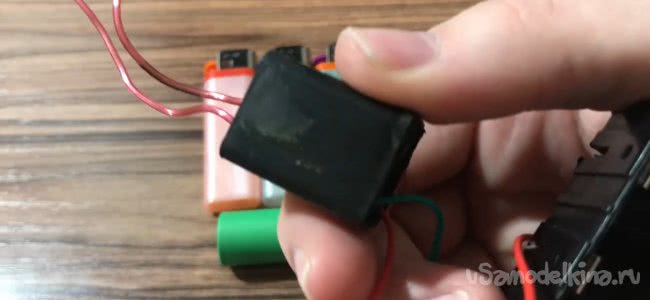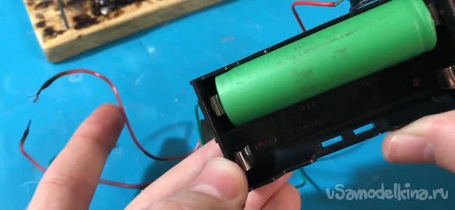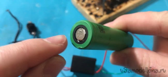 После того, как спаяем все компоненты в едино, вставляем аккумулятор 18650 и тестируем данную конструкцию на работоспособность. Кстати, места спайки желательно заизолировать с помощью термоусадочной трубки, либо же, с помощью синей изоленты. Так же, работая с высоковольтными преобразователями и высоко токовыми аккумуляторами типа 18650, необходимо использовать толстые провода, способные выдержать сильный ток: