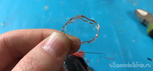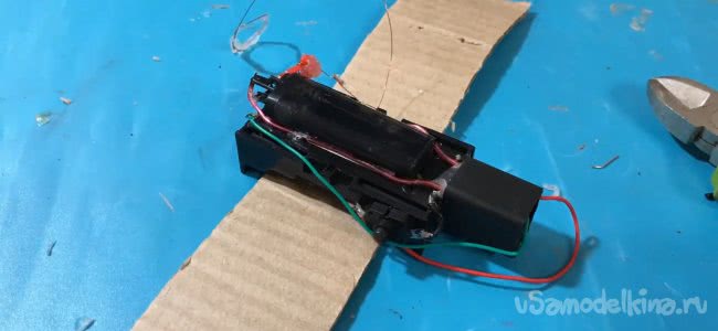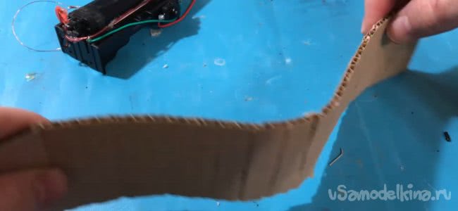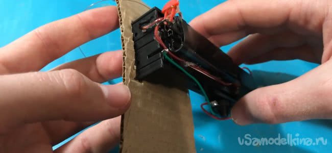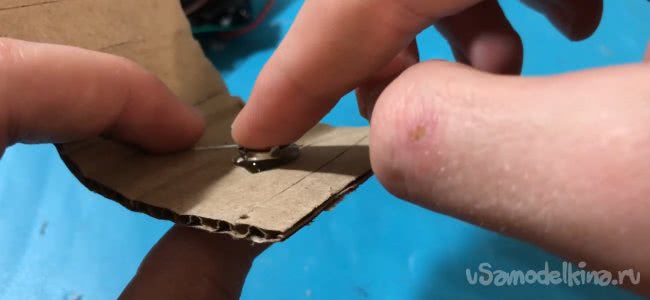 Теперь делаем крепление. Я человек простой и сделал просто из гофрированного картона, честно вам скажу, не лучшая моя идея, ибо бумажная деталь "огненной" самоделке — не лучшее решение. Но я парень рисковый и сделал вот так:
