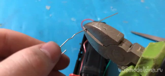 Одел рычажок на вентиль, и решил попробовать сделать блок, через который будет прокинута проволока, из самой обычной скрепки, но всё это удачей не увенчалось, скрепка оказалась слишком мягкой и просто прогибалась под давлением. Поэтому я разобрал получившуюся конструкцию и сделал следующее: