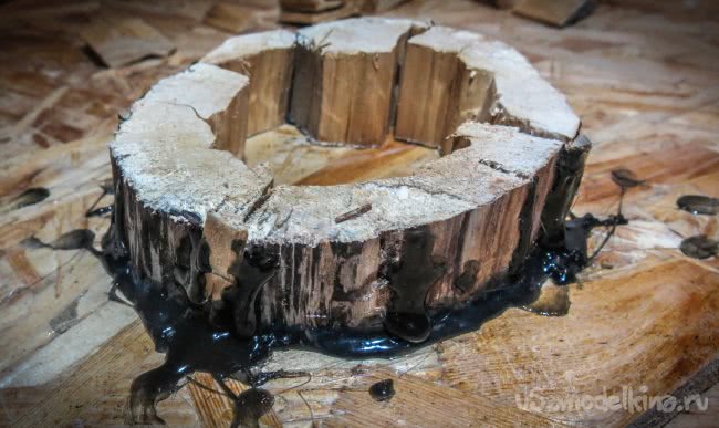 Там где щели были довольно большими просто приклеил к заготовке щепки, которые остались после выборки сердцевины заготовки.