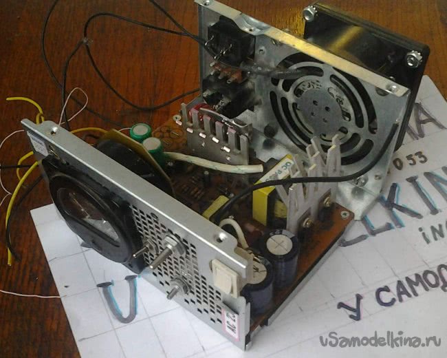 Собственно, необычно в этом БП только сочетание узлов, сами же компоненты достаточно типовые – импульсный БП + стрелочный ампервольтметр + вентилятор принудительного охлаждения 220 В с термодатчиком и тиристорным регулятором. Началось с того, что один из соседей по гаражу умудрился спалить свое древнее зарядное устройство (ЗУ), оно же универсальный блок питания (БП), причем так, что восстановлению оно не подлежало. Пришел ко мне - выручай, мол, чем можешь. Показал ему то, что было в наличии, ему не понравилось. В итоге состоявшихся переговоров родилось ТЗ на импульсный БП (из компьютерного) со стрелочным индикатором (вольтметр-амперметр), ну нравится ему такой. Такое дикое сочетание мне лично не попадалось. Ну, взялся за гуж... Первое дело - подбор головки (микро- или милиамперметра), которую можно использовать как вольт- или амперметр и одновременно засунуть в корпус компьютерного БП.