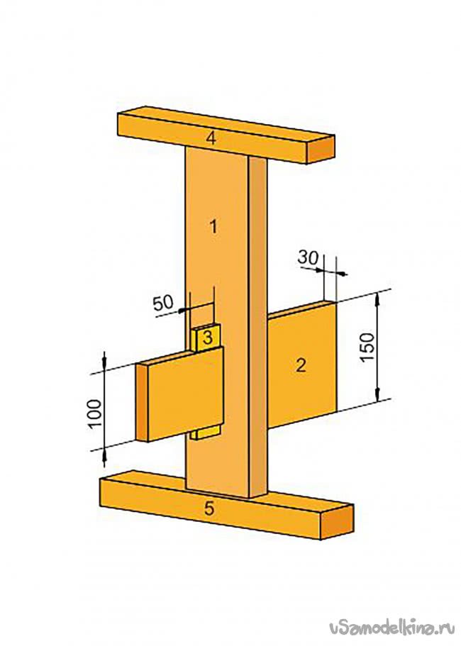 Для этого на концах опоры делаются вырезы, чтобы сформировать “шип с зубом” , а в стойках1 вырезаются ответные сквозные пазы. Условие: пазы должны очень плотно подходить к шипам, поэтому работайте очень аккуратно.