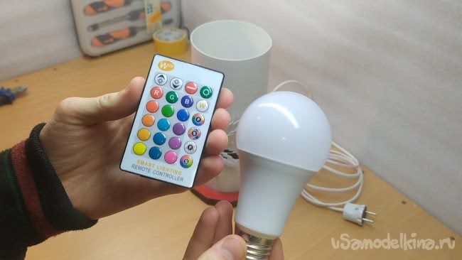 Шаг 7: С алиэкспресс я заказал светодиодную лампочку, которая может менять цвета при помощи специального пульта, стоила она 250 рублей. Вкручиваем лампочку в патрон, и ночник ГОТОВ!