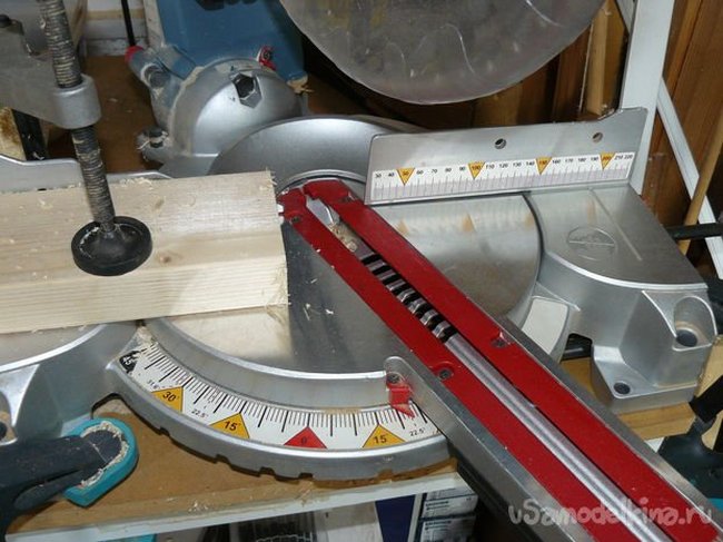 - Для простоты можно установить стоп-блок на пиле, чтобы пила останавливалась на середине планки.
