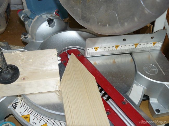 - Выставьте угол на пиле. Я резал под 23 градуса.
