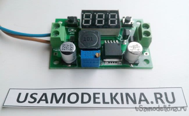 Импульсный DC-DC понижающий преобразователь с возможностью настройки напряжения на выходе и функцией ограничения тока на микросхеме LM2596S-ADJ cо светодиодным вольтметром на плате, с диапазоном входного напряжения от 4 до 40В, с диапазоном выходного регулируемого напряжения 1,5-35В, с номинальным током 2А.