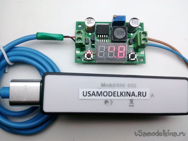 Хочется отметить, что в продаже имеются регулируемые понижающие модули питания без светодиодного вольтметра на микросхеме LM2596S-ADJ, с диапазоном входного напряжения от 4 до 40В, с диапазоном выходного регулируемого напряжения 1,5-35В, с номинальным током 2А. Стоят они раза в два дешевле, и они легче конечно. Power bank можно использовать другой, с большей ёмкостью и с другим выходным напряжением.