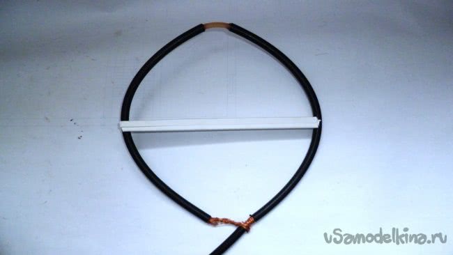 Соединяем кабель в кольцо.( Так как кабель попался довольно жесткий пришлось вставить пластмассовую перегородку)