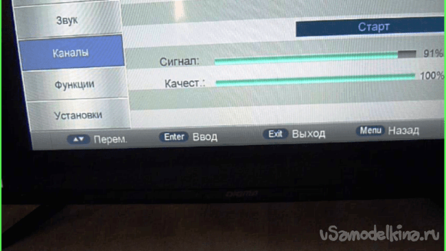 Если вы используете приставку DVB-T2 тогда на пульте надо нажать кнопку «INFO»- появится окно с индикацией качества и силы . На телевизорах с тюнером ЦТВ зайти в меню, затем нажать «Каналы», далее «Ручной поиск». Производим более точную подгонку нашей антенны.