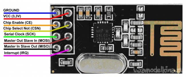 Я рекомендую использовать nrf24l01 мини. У этой версии размер платы 18 х 12 мм. Пульт получается компактнее, и плата не выходит за пределы ленты. Единственный минус – расстояние между контактами 1,27 мм, паять проблематично.