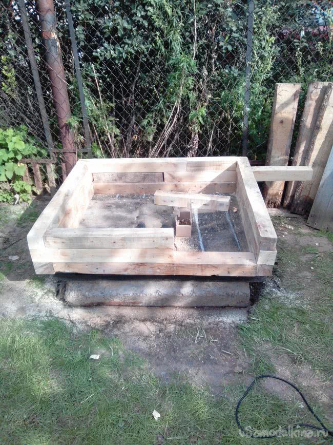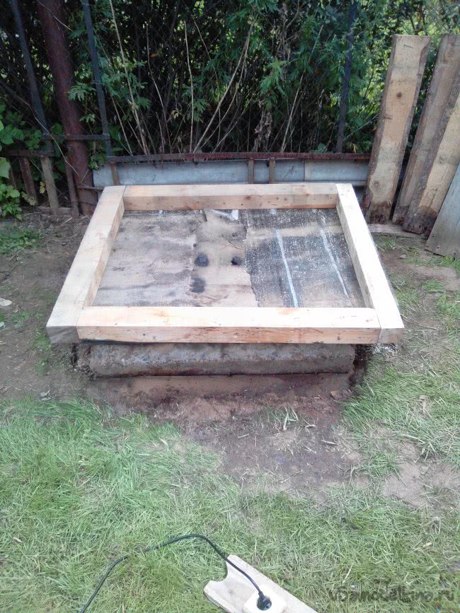 Основание 3 ступеньки от лестничного марша в место фундамента, да и что б поднять уровень. Далее пластиковый поддон и поехали.....