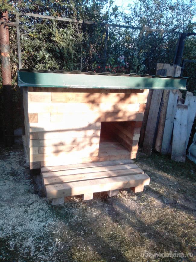 Решил поделиться работами по изготовлению собачьей будочки. Весь использованный материал, это остатки от «вечного» строительства на участке. Приобрел по дешевке на базе вторсырья - Б/У пластиковый поддон, да саморезы 5 х 150.