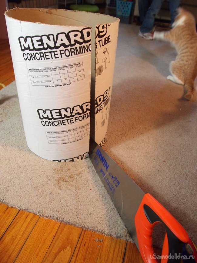 Из трубы длиной 120 см можно сделать 3 домика для котов. Для одного отмерьте рулеткой 40 см трубы и отрежьте.