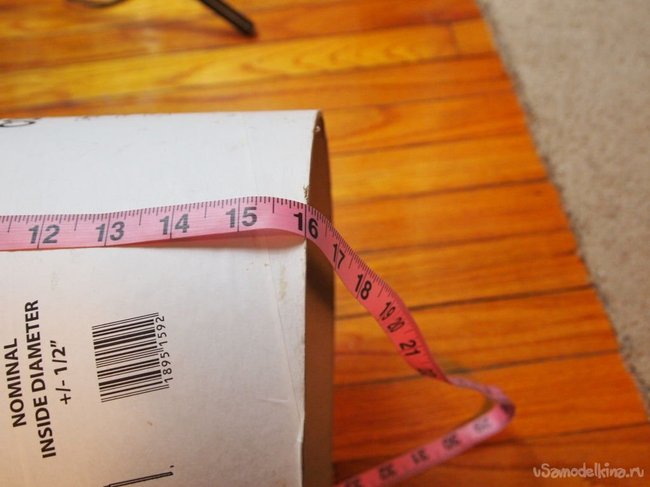 Вдоль трубы проведите ровную линию от края до края, отступите от нее около 16 см и прочертите еще одну такую продольную линию.