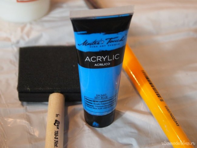 Кисточкой я прокрасил наружную сторону котодомика акриловой краской. Эта краска сохнет очень быстро, так что через несколько минут все было готово.