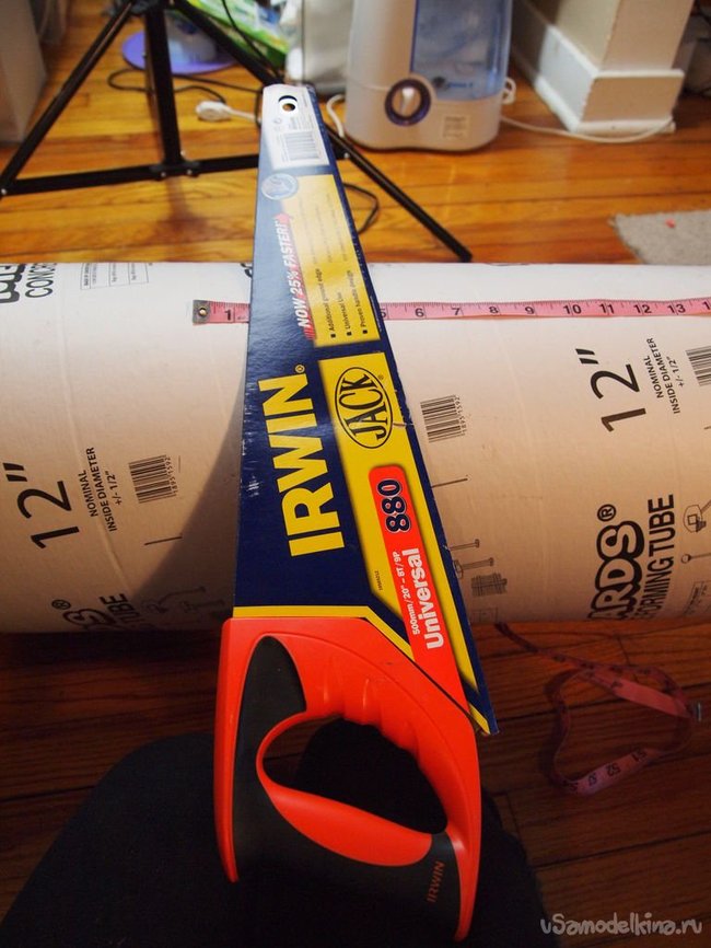 Ножовкой вырежьте кусок трубы, который потом послужит фундаментом для домика.