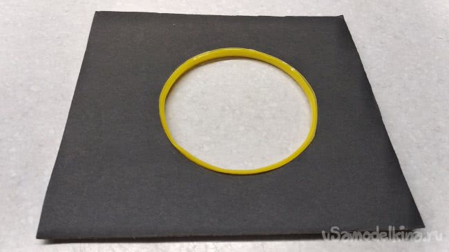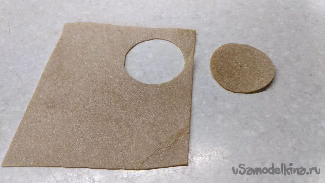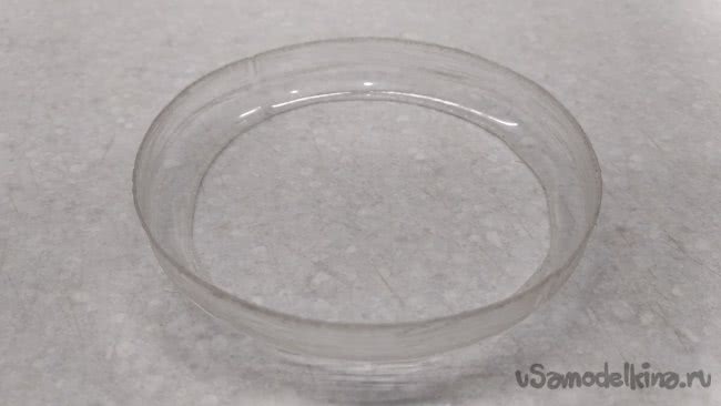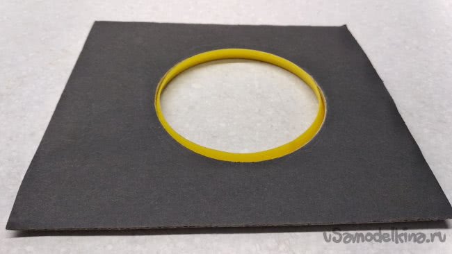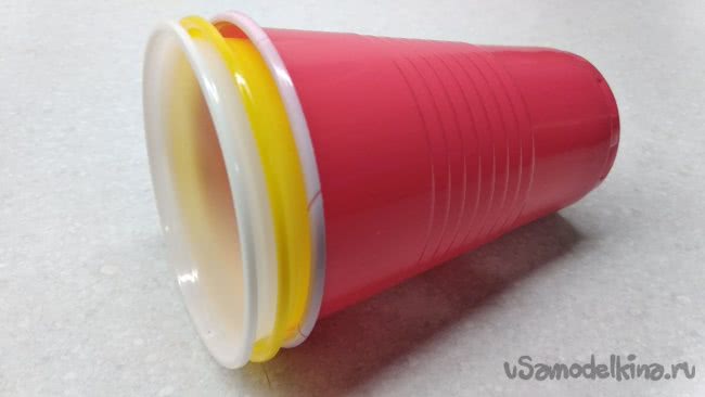 Из картона толщиной 1,5 ÷ 2 мм сделать приспособу с вырезанным отверстием, диаметром, равным диаметру замеренному под буртиком приготовленных стаканчиков.