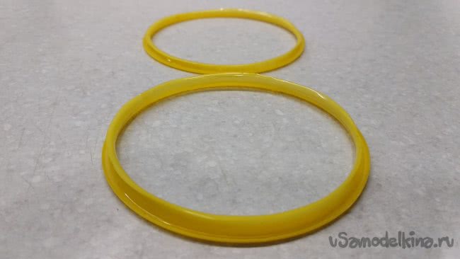 И развернув, вложить их друг в друга для получения разъёмного кольца с канавкой посредине.