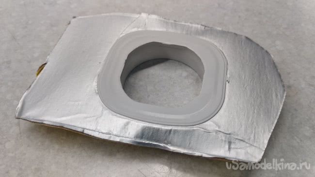 А в качестве сменного фильтрующего элемента применены подходящие по размеру, сложенные вчетверо (можно и больше) влажные салфетки после некоторой их подготовки, заключающейся в простом выветривании в течение двух - трёх часов.